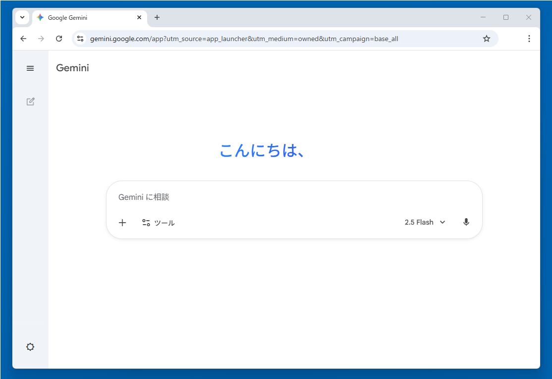 ブラウザで「gemini」を検索するか 直接Geminiにアクセスしてください。