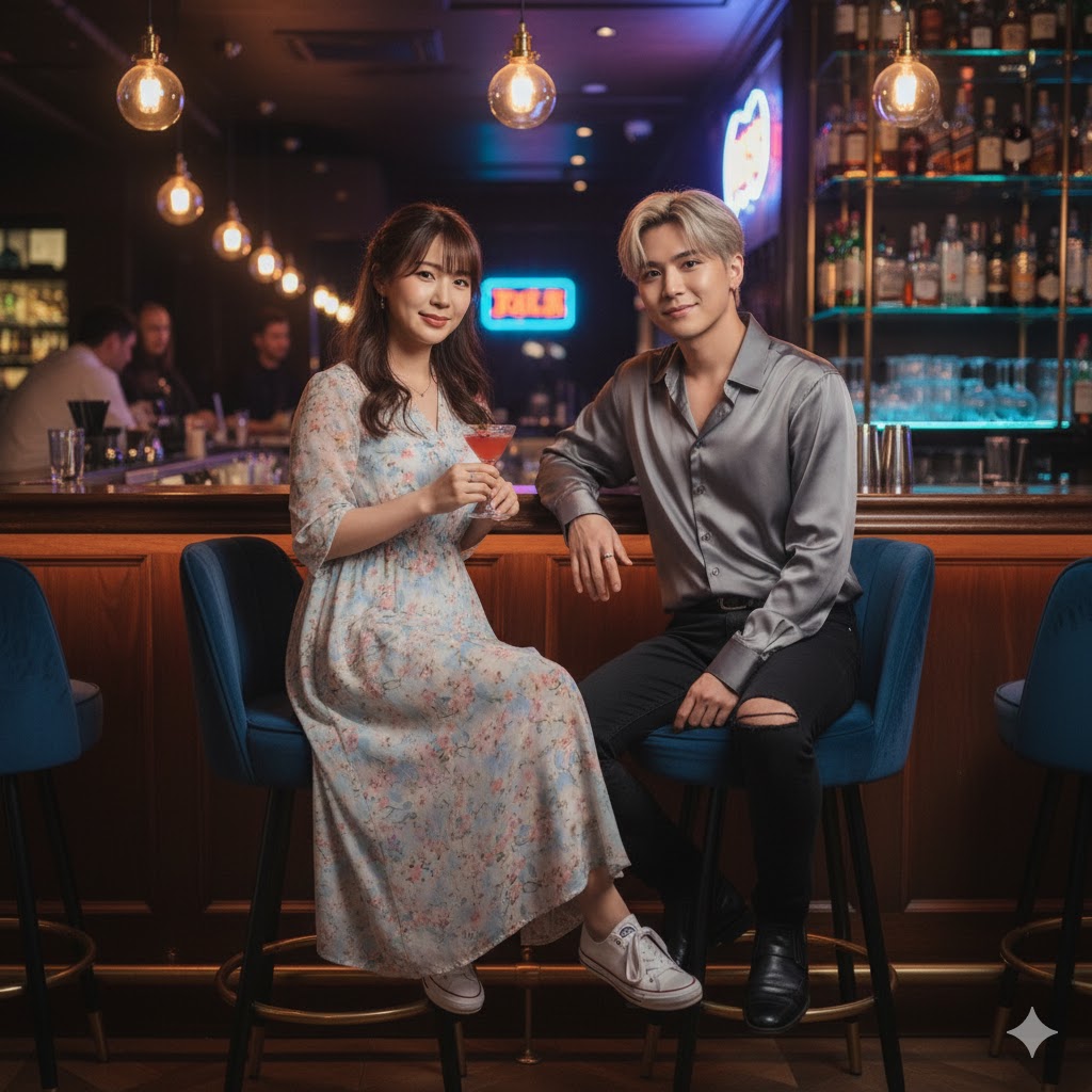 背景はおしゃれなバーで撮影されたような写真に変換